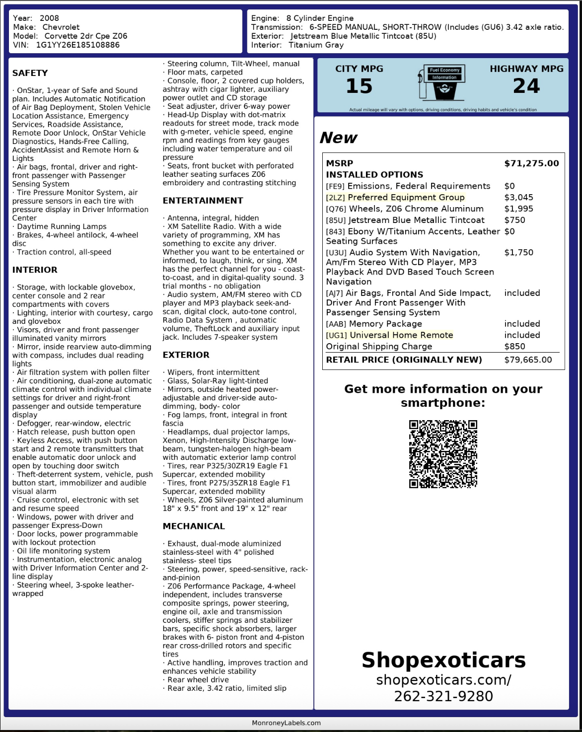 Factory upgrade over standard Z06 alloys. - [U3U] AM/FM Stereo with Navigation & DVD Touchscreen – $1,750
